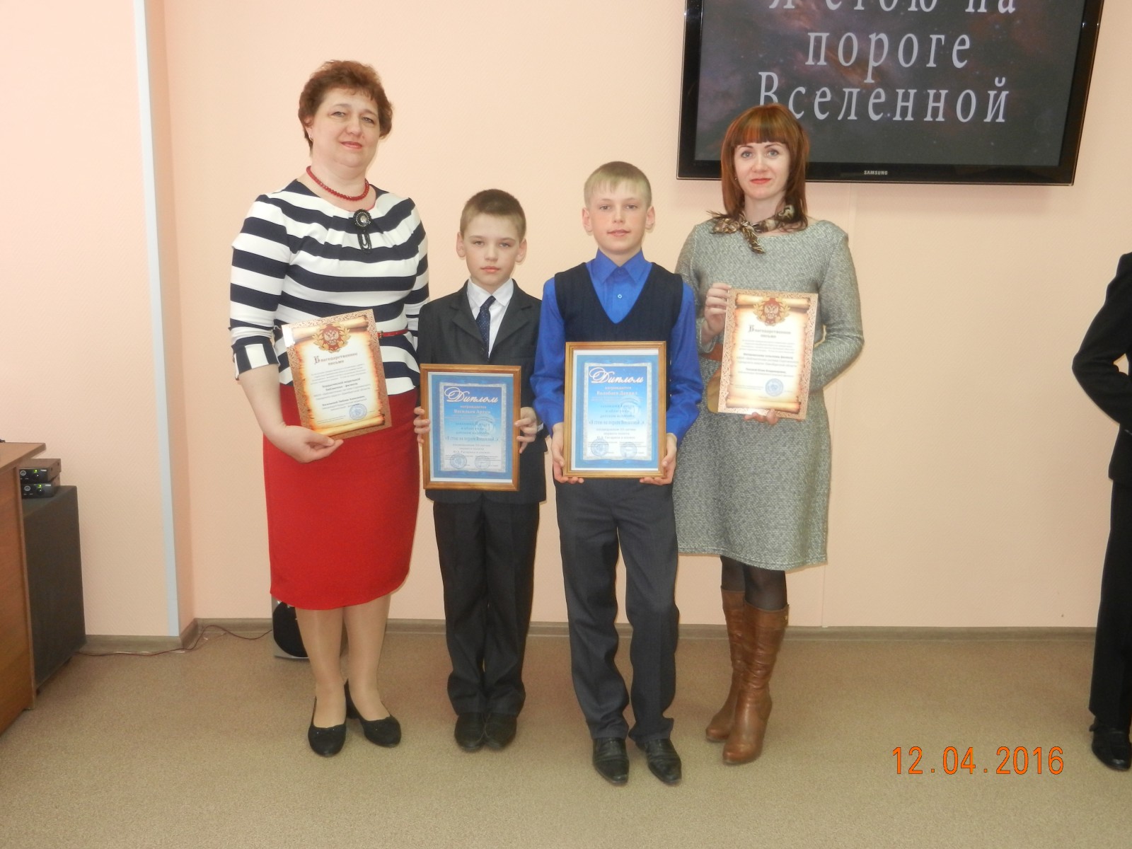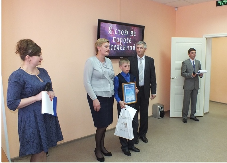 Два представителя Сорочинского городского округа стали победителями в двух конкурсных номинациях. Это Волобаев Даниил, обладатель I-го места в номинации «Письмо космонавтам, находящимся в настоящий момент в космосе: Юрию Маленченкову и Сергею Волкову» и Васильев Артём, занявший II-е место в номинации «Письмо земляку-космонавту: Ю.В.Романенко, Г.М.Манакову, А.С.Викторенко, В.В.Лебедеву, Ю.В.Лончакову». Победители конкурса и их кураторы были награждены дипломами, грамотами и памятными подарками, которые вручали Светлана Сергеевна Мячина, Владимир Дмитриевич Проскурин, директор Оренбургской областной полиэтнической детской библиотеки, и кандидат технических наук, доцент кафедры летательных аппаратов Аэрокосмического института Оренбургского государственного университета.