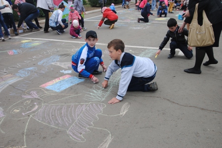 Свои художественные таланты дети продемонстрировали на асфальте.