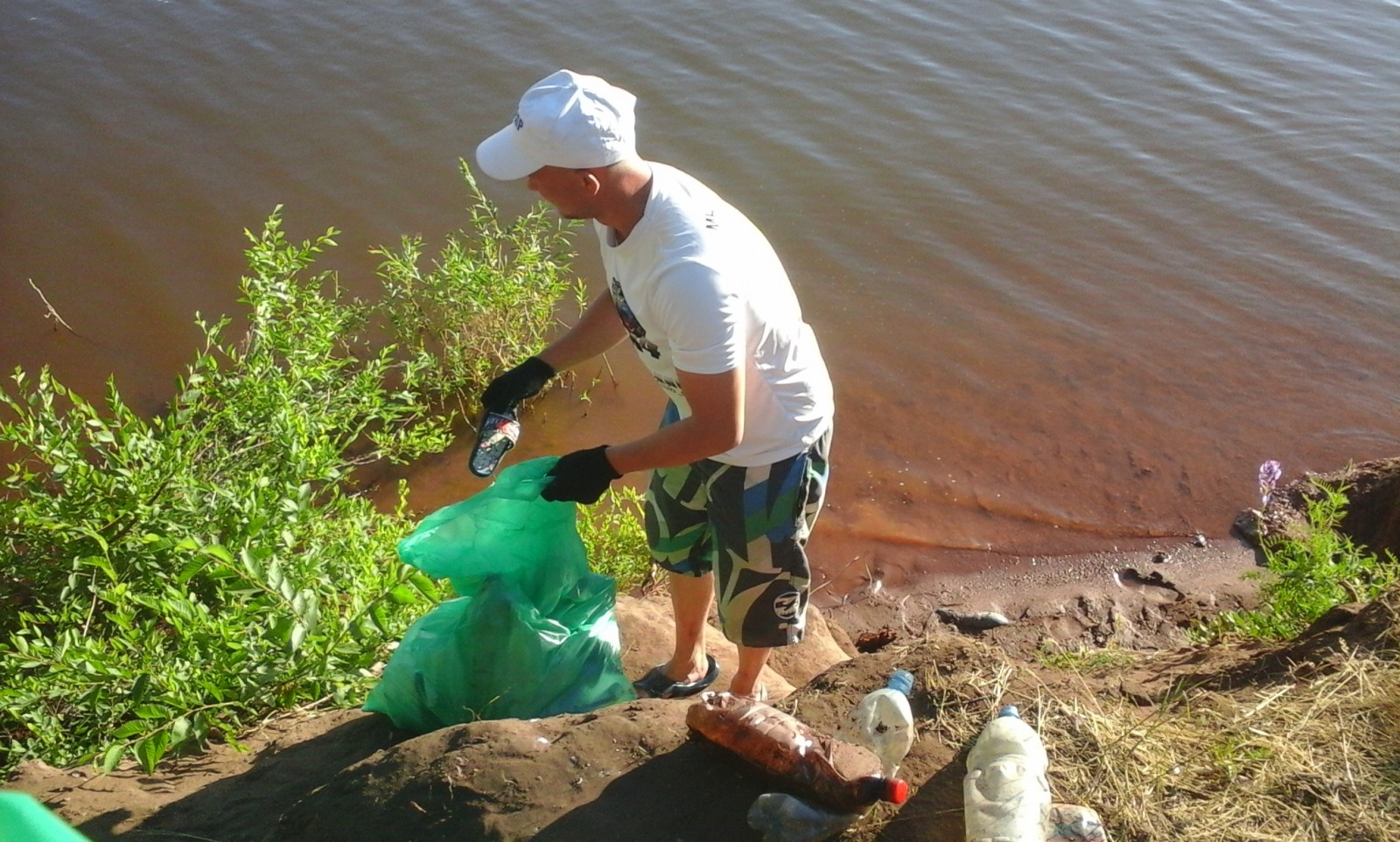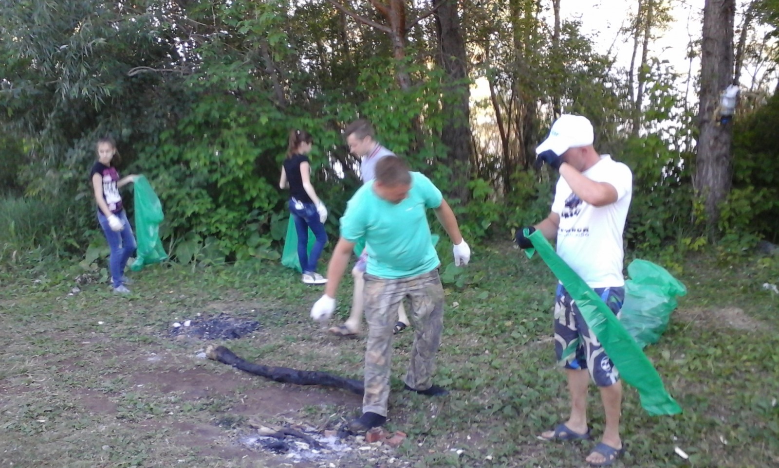 Молодые люди расчистили от мусора берег водохранилища. Бутылки, коробки, мелкий и крупный мусор, чего только нет на берегу. Один мешок, за ним - второй, третий... За несколько часов, береговая линия меняется до неузнаваемости.
