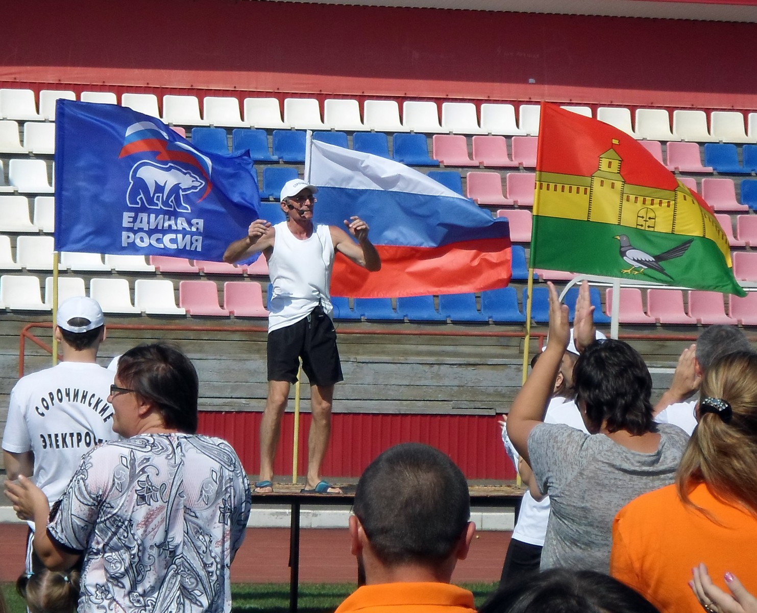 Глава муниципального образования Сорочинский городской округ Т.П. Мелентьева поздравила всех присутствующих с Всероссийским Днём физкультурника. «Массово-физкультурное движение формирует у людей приверженность здоровому, активному образу жизни, закаляет характер и волю, воспитывает чемпионов. Именно с дворовых площадок, кружков и секций начинали свой путь к вершинам мастерства наши выдающиеся спортсмены и те, кто сейчас борется за победу на Олимпийских играх в Рио-де-Жанейро.» ‑ сказала Т.П. Мелентьева.