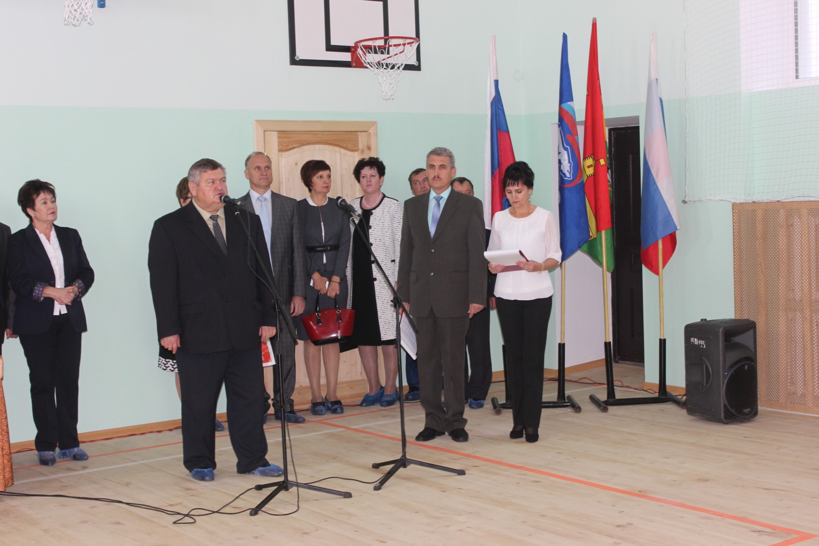 От лица родителей и учеников выступила директор МБОУ «Войковская СОШ» Галузина Татьяна Ивановна, которая поблагодарила всех присутствующих, кто принял участие в ремонте и строительствеспортивного зала, за создание условий для реализации и развития детей.
