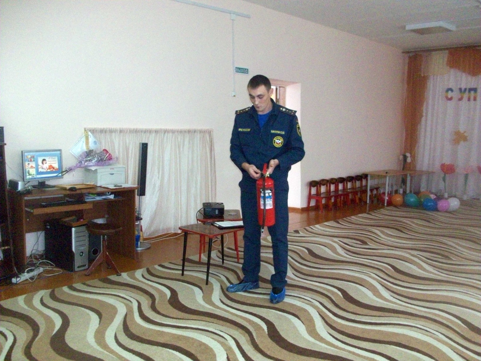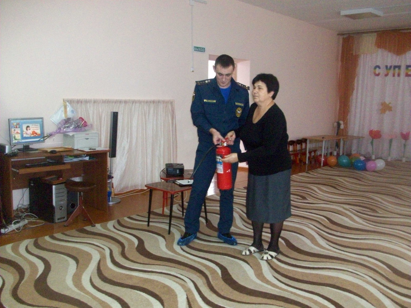 При проверке знаний сотрудники и персонал детского сада показали хорошие знания по своим действиям в случае возникновения пожара и правильным пользованием первичными средствами пожаротушения. С обслуживающим персоналом учреждения был проведен противопожарный инструктаж по соблюдению требований пожарной безопасности на объектах образования и в быту. Всего было задействовано 44 работника учреждения.