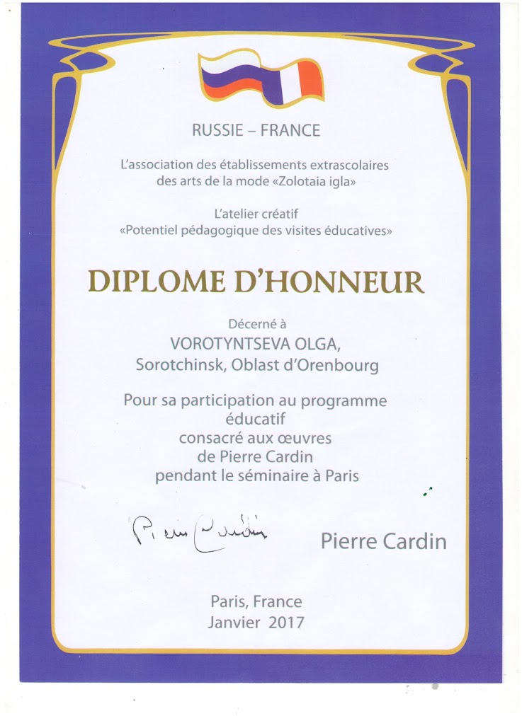 Руководитель образцового детского коллектива «Театр моды «Эдельвейс» Воротынцева Ольга Алексеевна вошла в делегацию 14 представителей из России. Ассоциация и ее почетный председатель Вячеслав Зайцев организовали в Париже настоящую сказку.