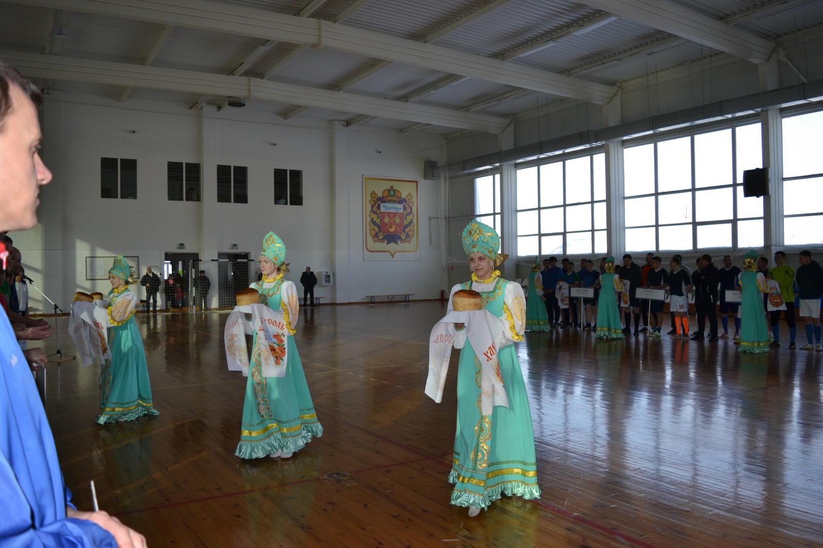 Проведение турнира по мини - футболу среди ветеранов боевых действий, работников правоохранительных органов и силовых структур посвященного Дню защитника Отечества стало доброй традицией. Девочки из танцевального коллектива «Каприз» гостеприимно встретили участников соревнований хлебом - солью и исполнили танец «Армия».