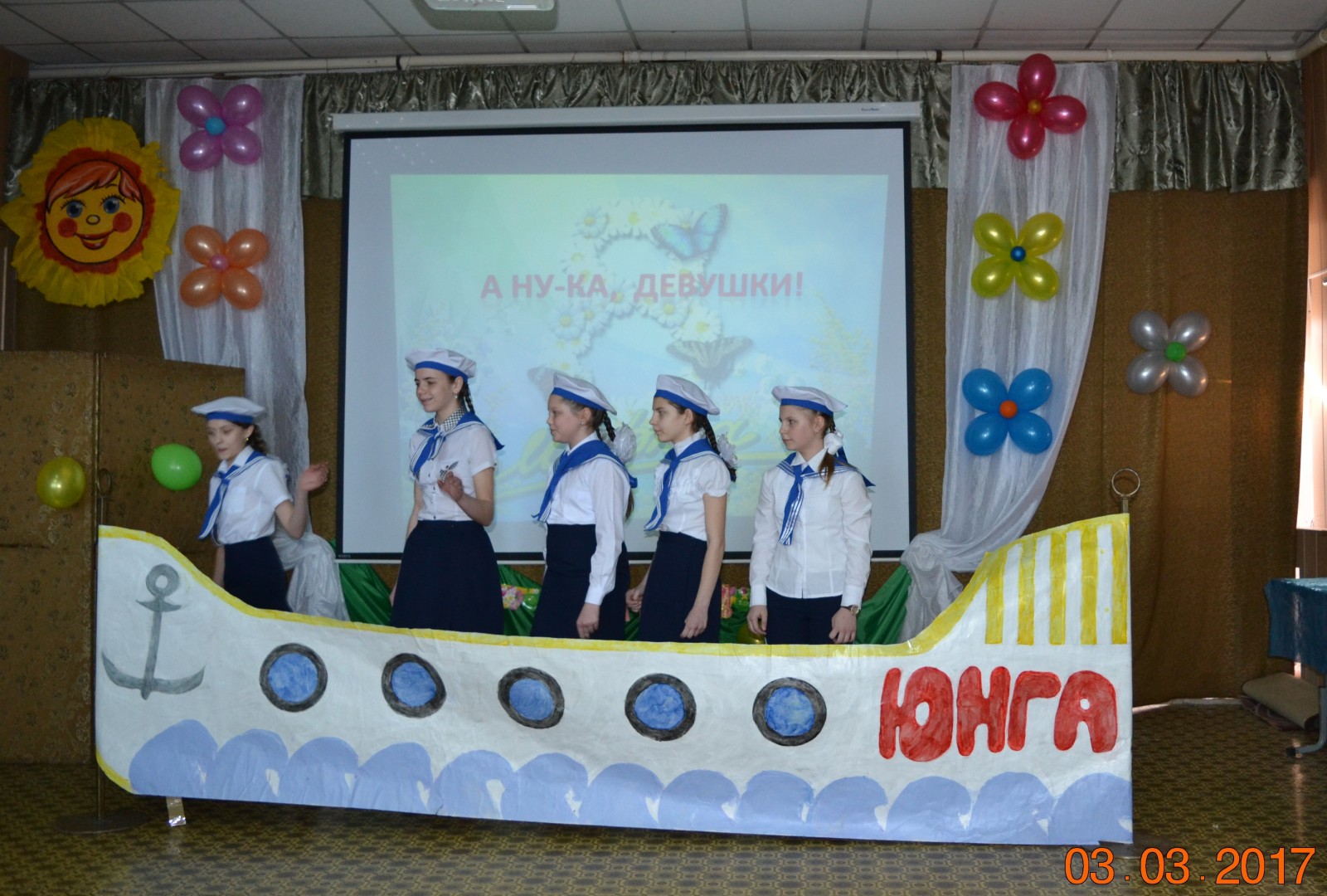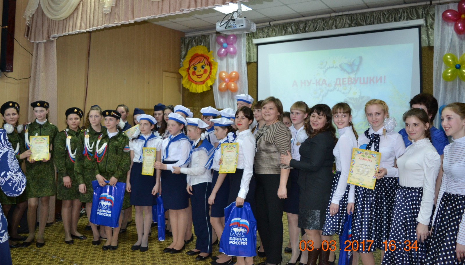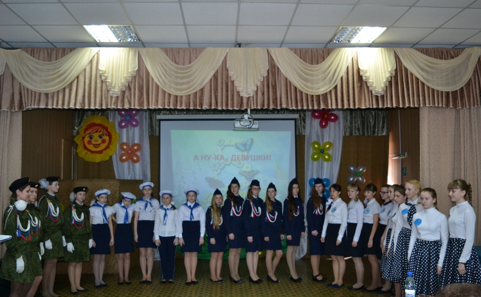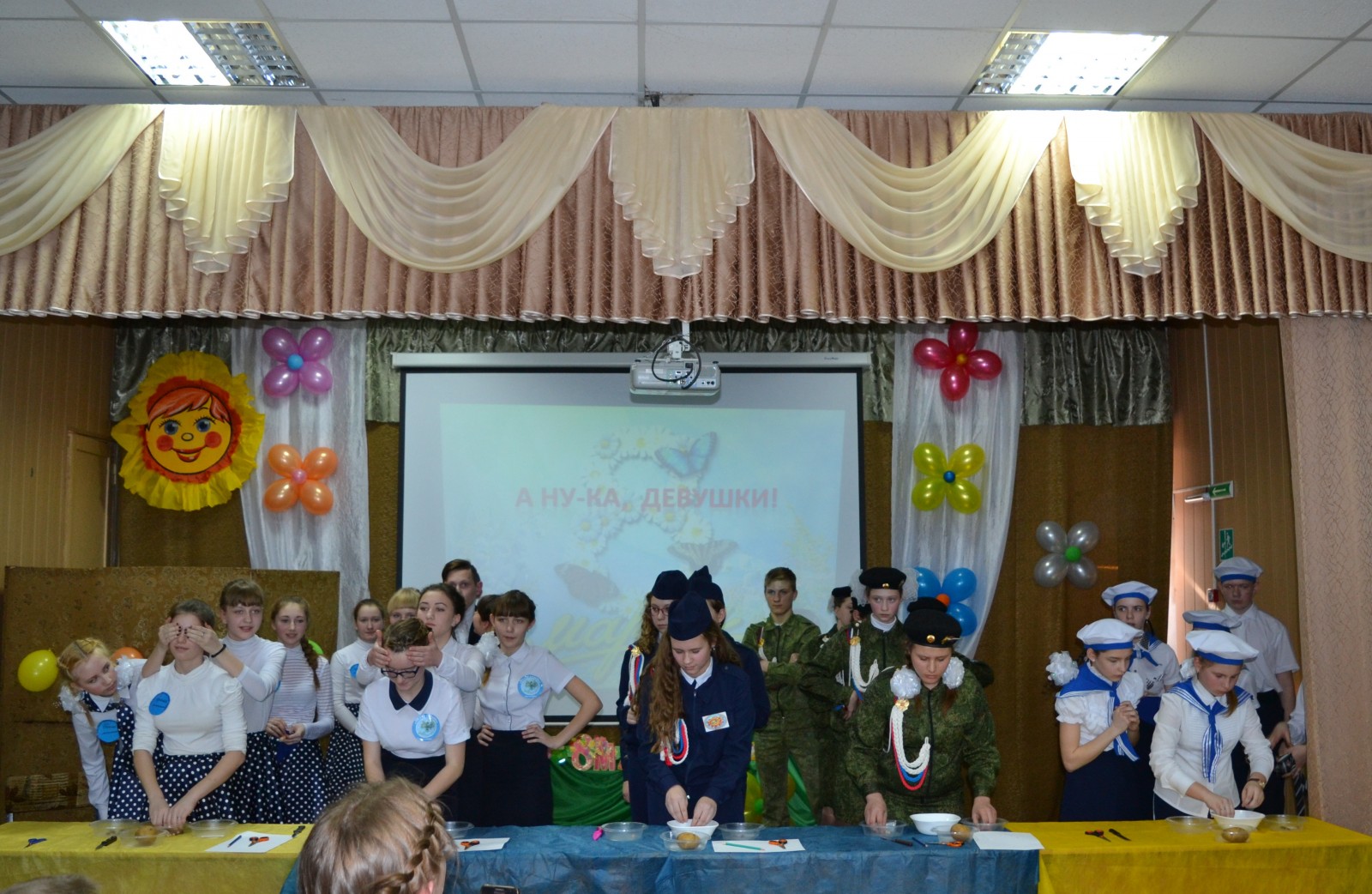 03.03.2017г. в МБУДО «ЦДТ» г. Сорочинска состоялся первый муниципальный конкурс «А ну-ка девушки!» среди кадетских классов образовательных учреждений Сорочинского городского округа. В конкурсе принимали участие девушки - кадеты СОШ №1, Родинской СОШ, Второй Михайловской СОШ, Толкаевской СОШ и СОШ №7. Конкурс оценивало жюри, в состав которого входили: заместитель главы Сорочинского городского округа Новик Сергей Павлович, начальник отдела ЗАГС администрации Сорочинского городского округа Лазина Ирина Васильевна, специалист по связям с общественностью администрации Сорочинского городского округа Задорожнева Оксана Владимировна, директор ЦДТ Пеннер наталья Владимировна. С приветственным словом и открытия мероприятия выступил Новик С.П. Девушки конкурсантки состязались в следующих конкурсах: