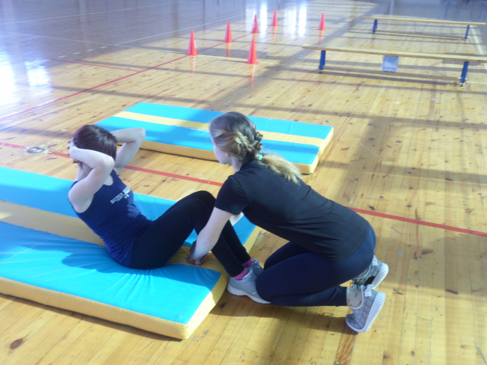 В упражнении на гибкость высокий результат у Ангеловой Анастасии из школы № 117 и Голубева Владислава из Аграрного техникума.