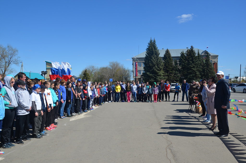 На городской площади, украшенной разноцветными флагами и символами Победы, состоялось торжественное открытие легкоатлетического забега.