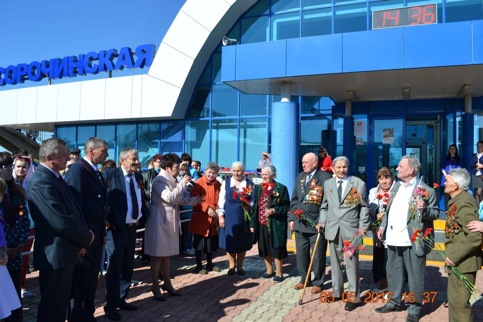 Ветеранов и встречающих ретро-поезд сорочинцев поздравила глава МО Сорочинский городской округ Мелентьева Т.П.. Людей было очень много.