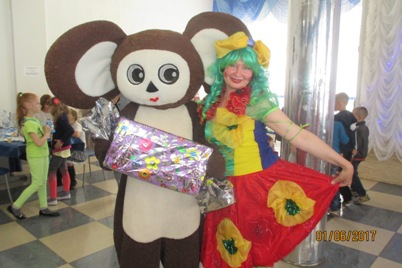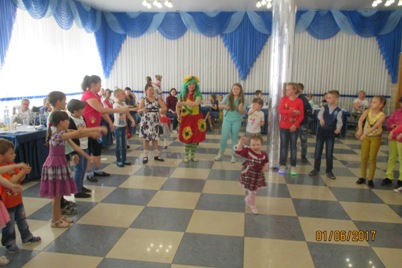 В начале выступили коллективы с песнями и танцами, по ходу всего праздника дети пили сок, ели мороженое и разные сладости. В конце с игровой программой пришла клоунесса Веселинка в лице пдо Растопчиной Е.П. и приглашала в гости Лунтика и Чебурашку в лице Босовой Н.А. Дети танцевали, играли в разные игры, а в конце получили конфеты.