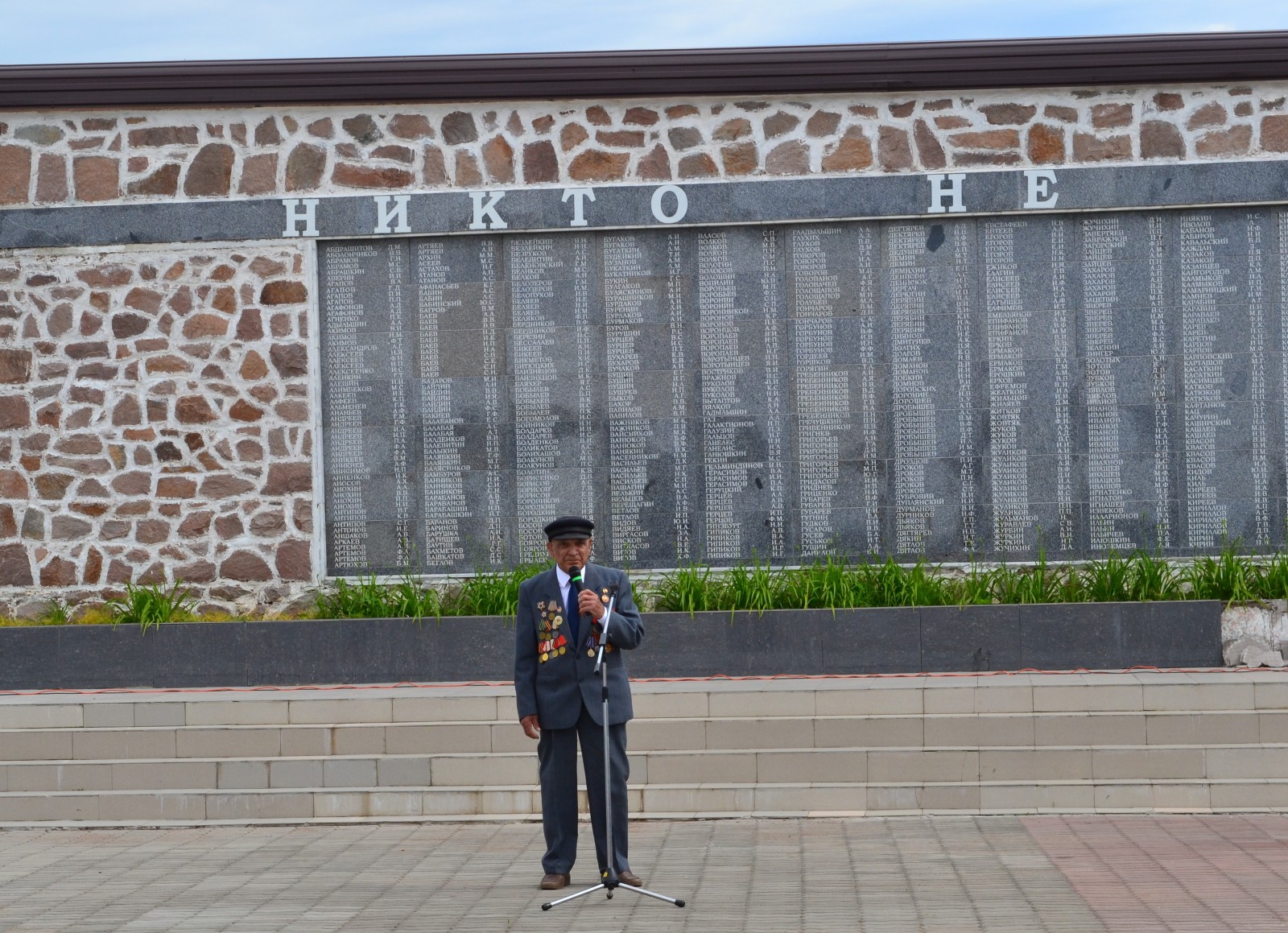 Со словами скорби и повествованием тех событий, как участника и очевидца героических и трагических событий, выступил участник Великой Отечественной Войны Сайфуллин Куддус Газымович.