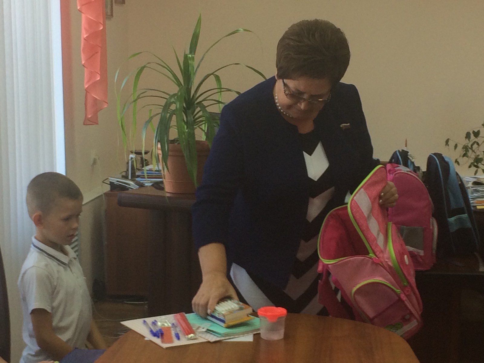 "Портфель первоклассника" вручили пяти ребятишкам из многодетных семей.