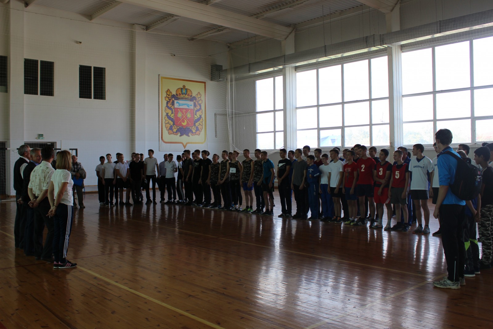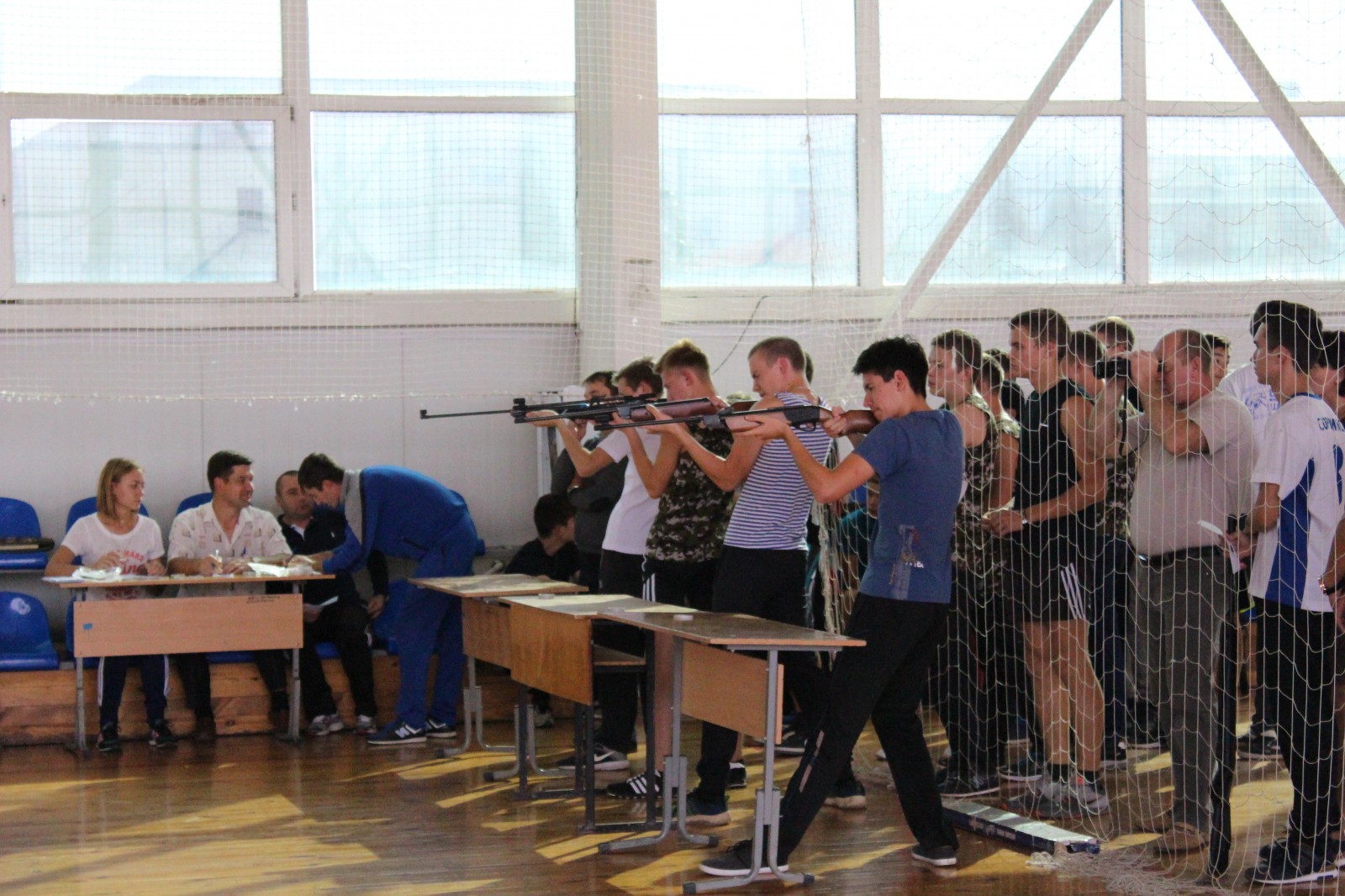 Учащиеся 15-17 лет соревновались в пяти спортивных дисциплинах: в беге на 100 и 2000 метров, в подтягивании на перекладине, стрельбе из пневматической винтовки и метании гранаты.