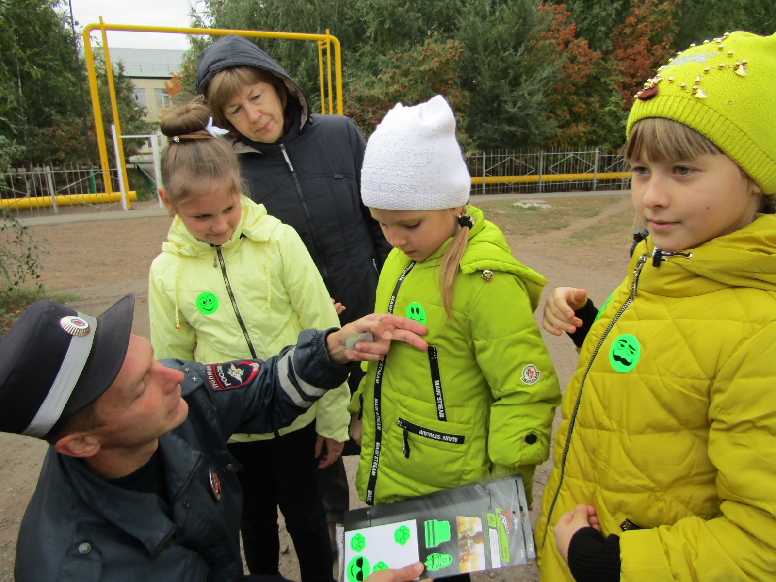Учащимся четвертых классов, после лекции о правилах безопасности во время движении вблизи проезжей части, были розданы светоотражающие значки, которые тут же были закреплены на одежде школьников.