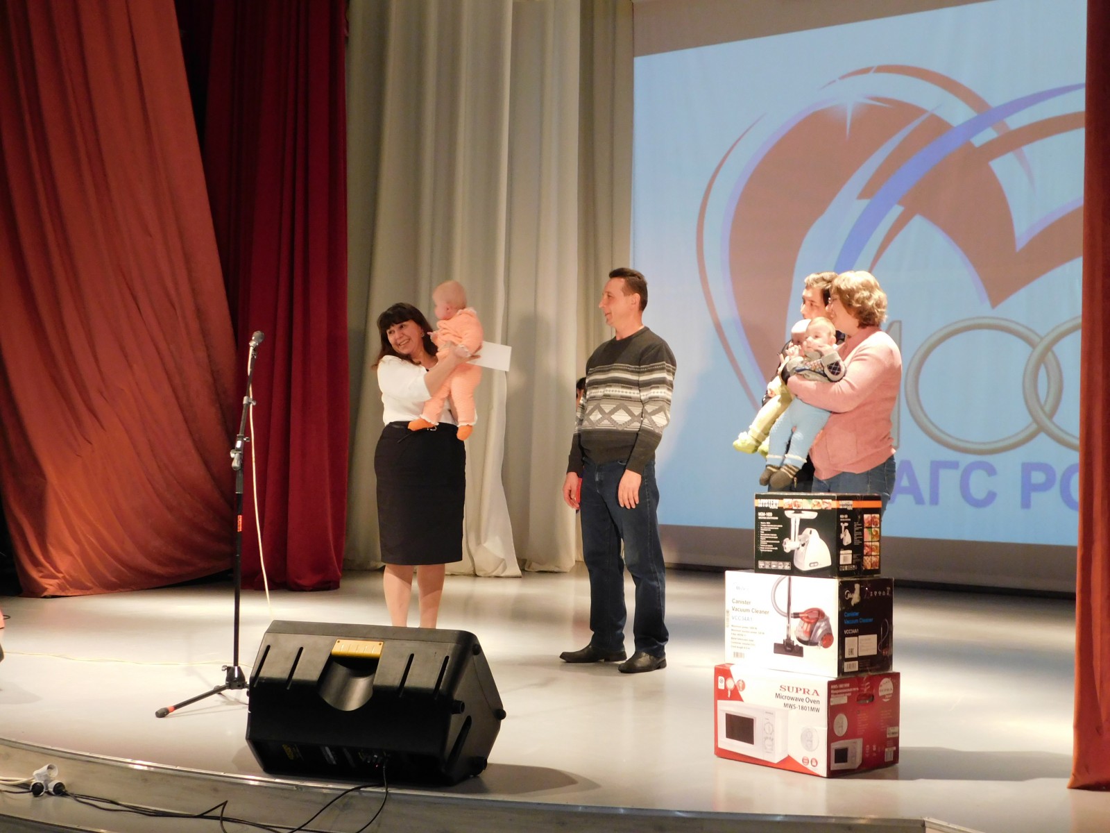 Ирина Васильевна на сцене чествовала семейные пары, прожившие вместе 50, 60 лет, а также вручила Грамоты специалистам ЗАГСА территориальных отделов.
