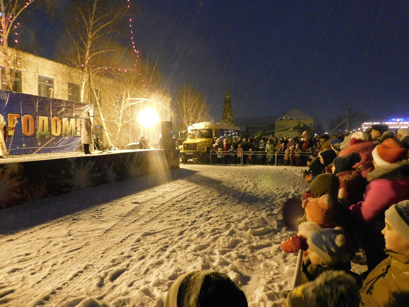 Для жителей и гостей округа была представлена концертно-театрализованная программа. Дед Мороз и Снегурочка зажгли елку на центральной площади.