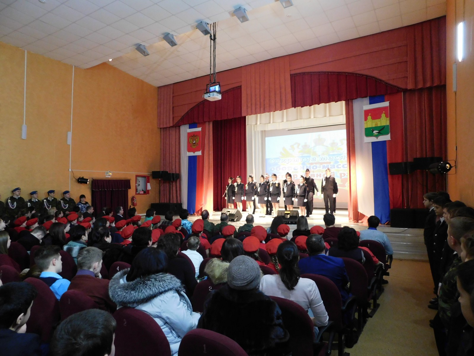 В торжественном открытии месячника приняли участие учащиеся образовательных организаций, студенты профессионального образования - юнармейцы, воспитанники военно-патриотических клубов, казачьих, кадетских и полицейских классов, допризывная молодежь.