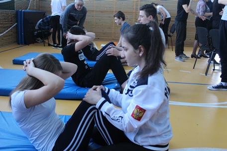 В упражнении на сгибание и разгибание рук в упоре лежа на полу 12-летние Маленко Максим «отжался от пола» 40 раз, а Дробышев Никита - 37 раз, 15-летние Едаков Никита и Биккиняев Азат также по 40 раз.