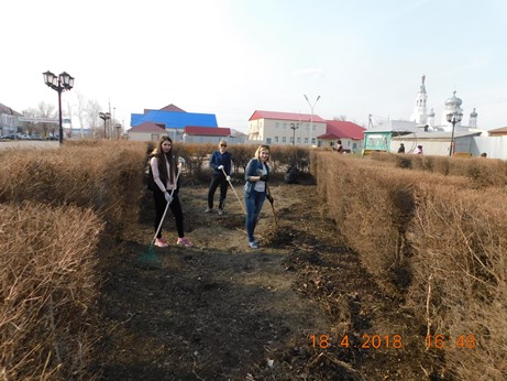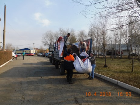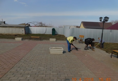 18 апреля 2018 г. сотрудники администрации, вооружившись метлами, граблями и другим уборочным инвентарём, провели уборку территории, прилегающую к администрации, и территорию «Аллеи любви».