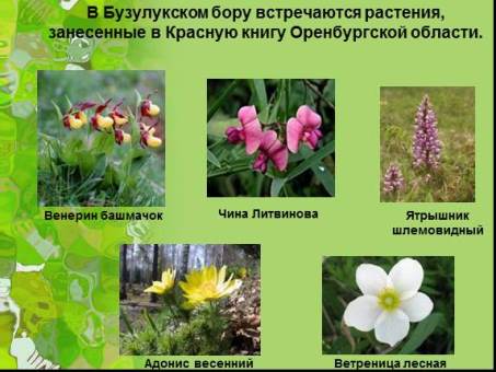 В Красную книгу занесено 8 видов орхидей, произрастающих на территории Оренбургской области, среди них башмачок крупноцветковый, липарис Лезеля и ятрышник шлемоносный.