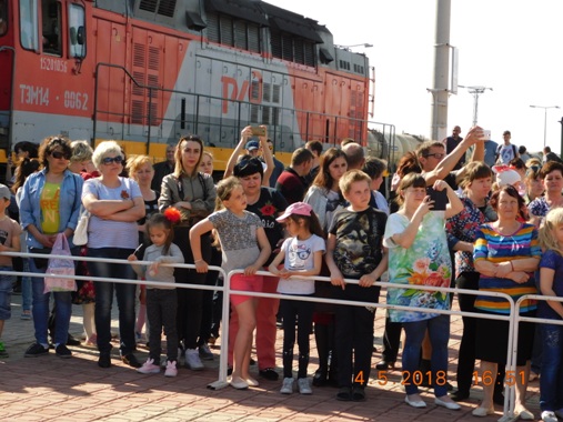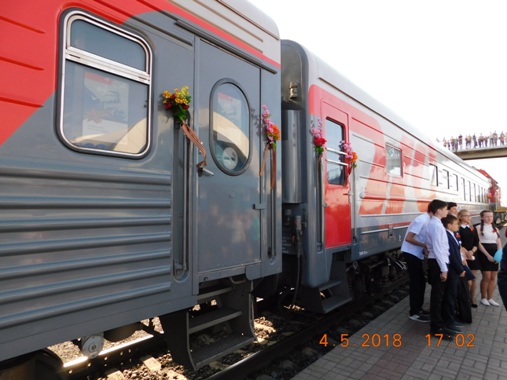 Участников ретро-поезда приветствовали начальник Оренбургского региона ЮУЖД Константин Поляков, глава муниципального образования Татьяна Петровна Мелентьева. Константин Поляков отметил, что, к сожалению, ретро-поезд паровоз ЛВ-0165 1956 года постройки вышел из строя, поэтому пришлось его заменить на современный тепловоз. Но это не помешало душевной и трогательной встрече с ветеранами Великой Отечественной войны- победителями.