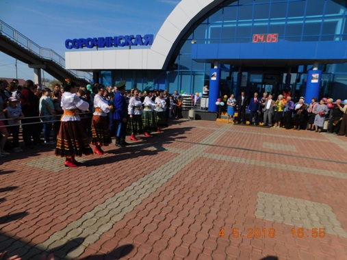 На станции Сорочинская ветеранов встречали глава городского округа Мелентьева Т.П., депутаты городского Совета, жители округа.