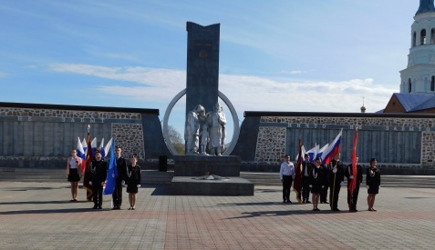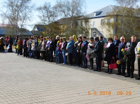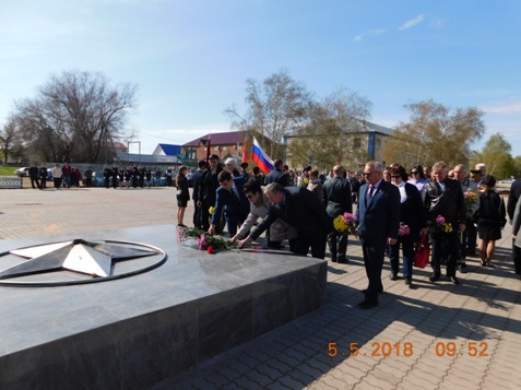 Участники митинга почтили память павших советских солдат минутой молчания, возложили цветы к Вечному огню.