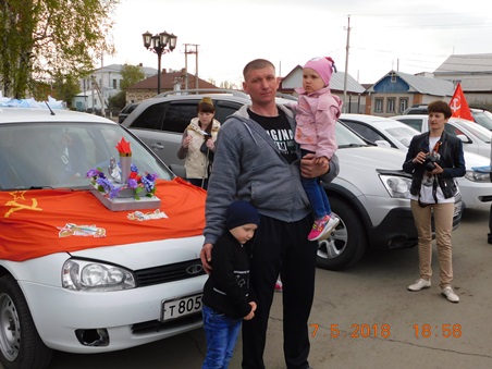 Поприветствовали участников автопробега и поздравили с наступающим праздником Победы начальник отдела по физкультуре и спорту администрации городского округа Кочетков В.И. и специалист по молодежной политике Антошкина Юлия.