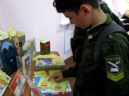 В читальный зал библиотеки пришли учащиеся 5 кадетского класса МАОУ «СОШ № 3» им. Героя Советского Союза И. А. Акимова, которые узнали много интересных фактов, касающихся истории создания славянской азбуки, и убедились в том, русский язык не просто «велик и могуч», но и скрывает в себе массу секретов. Прослушав рассказ библиотекаря, ребята выяснили, что собой представляет буквица и глаголица, познакомились с понятиями «клинопись» и «узелковое письмо».